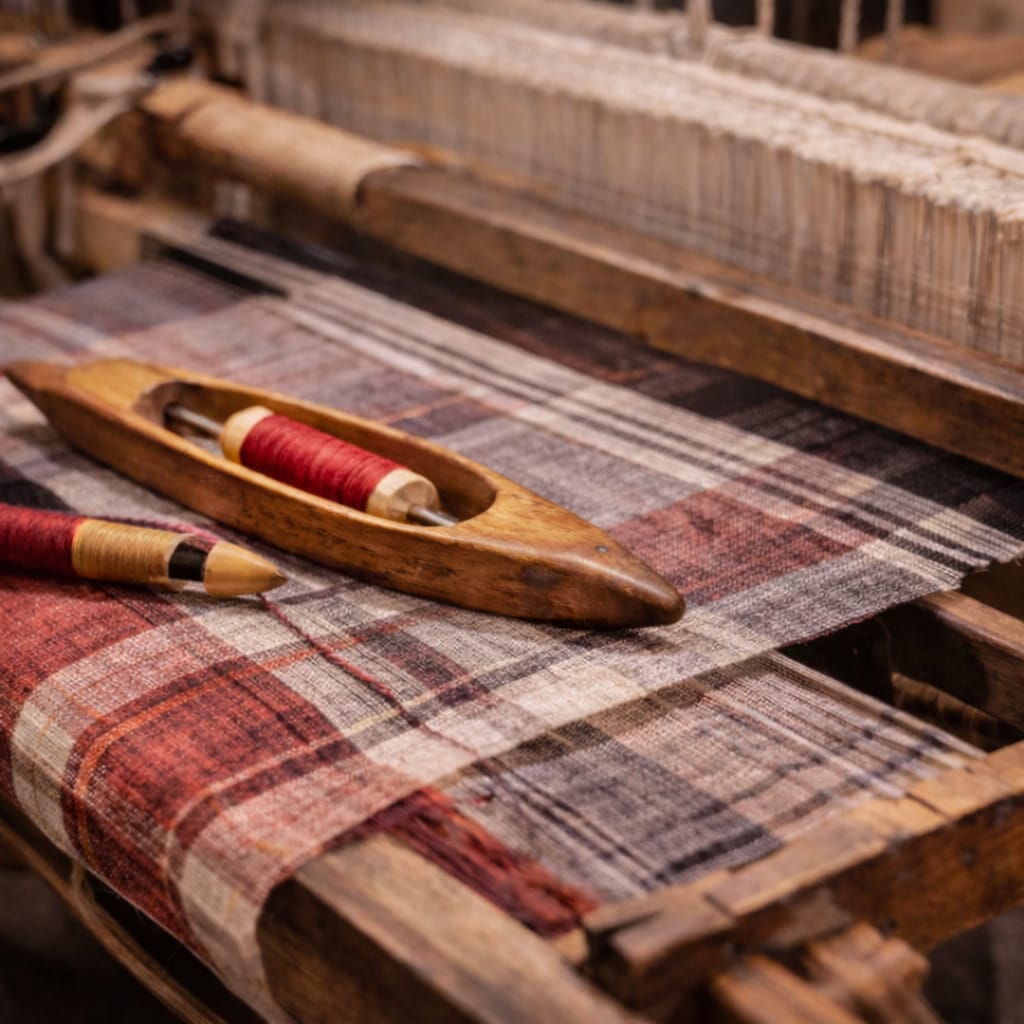 Authentic handcrafted fabrics produced using traditional weaving techniques.